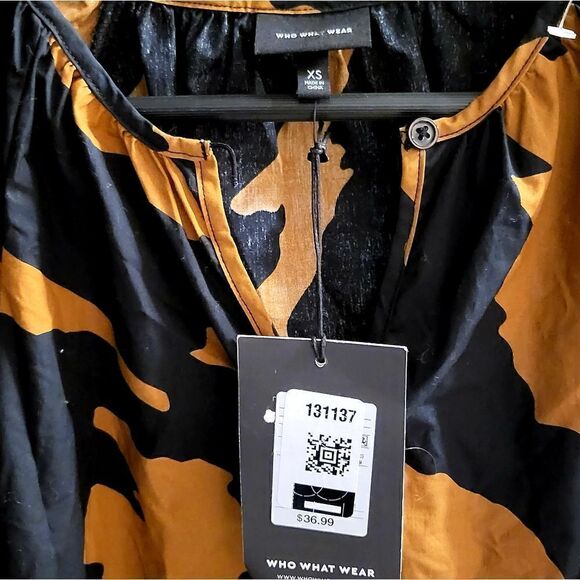 orange and black printed long sleeve cotton dress. NWT