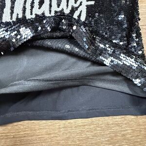 Black all-over front sequins with "It's My Birthday" in white sequins