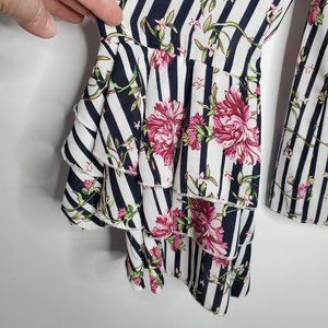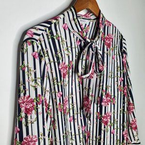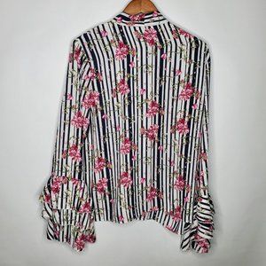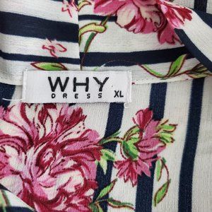 Why Dress Womens Floral Striped Button Front Secretary Blouse Size XL Ruffled