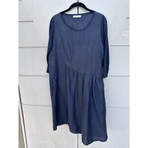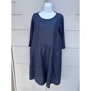 Whyci Milano Women Lagenlook Black Linen Cocoon Style Dress Sz 42 IT/6 US Chic