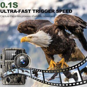 Equipped with 46pcs 940nm infrared LEDs and 3 PIR sensors, it delivers clear black-and-white images in complete darkness. The camera triggers instantly in 0.1 seconds, ensuring you never miss a moment.
