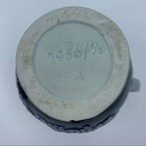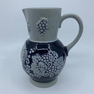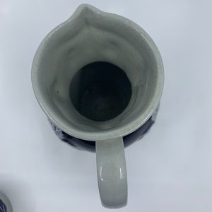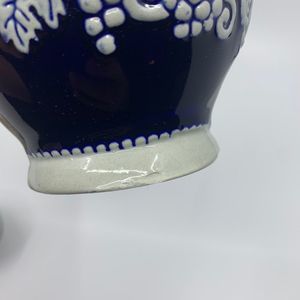 Overall good condition. No chips, cracks or repairs on the goblets, however they do have some crazing. There are some manufacturing blemishes inside, and one has a blue paint smudge on the rim. The pitcher does have a small chip on the bottom as and some scratching. Still a nice set. Displays well. Stamping is intact on the goblets, the pitcher only has 2956/ 1/2. Dimensions are approximately 6 1/2” tall on the pitcher and the goblets are 3 1/8” tall by 2 1/4” wide.
