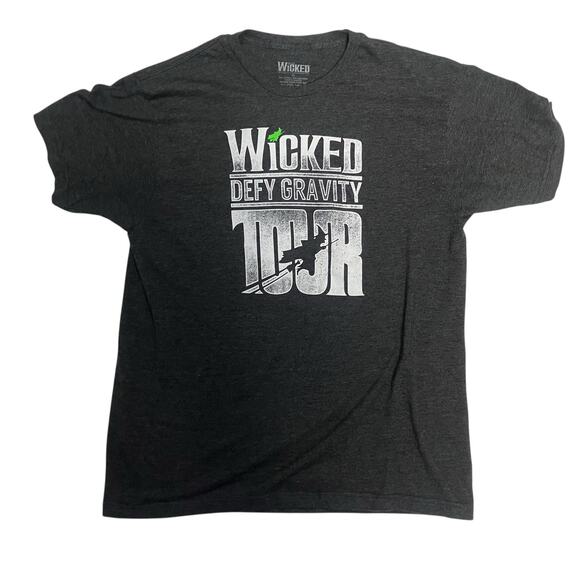 Wicked Defy Gravity Tour Musical Tee Shirt Short Sleeve Large Gray