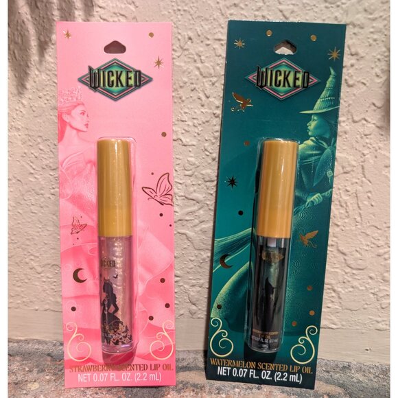 Brand new Wicked themed lip oil bundle — 2 pieces total, both sealed on original cards.