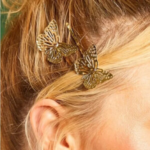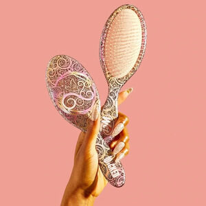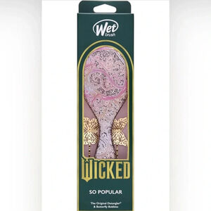 A set including one Pink Glinda Wet Brush and two small gold toned butterfly hair accessories. Brand new in box