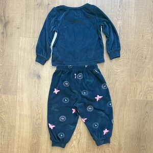 For all my Wicked the movie lovers. Cozy fleece toddler girl pajama set featuring a butterfly design and flying monkeys. Also had Elphaba and Glinda silhouette. Includes a long-sleeve top and matching pants. Perfect for bedtime.