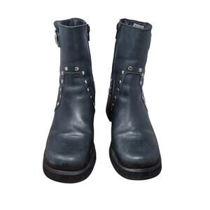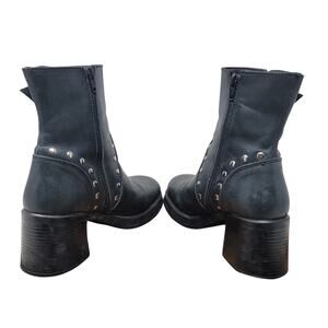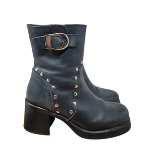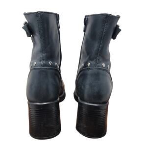 Wicked Road Warrior Women Black Studded Buckle Leather Boots Made in Spain US 7 Inside Zip Closure. In Great Condition Bin 5679