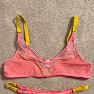 Wicked Weasel - Heat Wave 3543 Crop Bikini Top - M & 2543 Cheeky Bikini Bottom - XS in Bare Vision Pink / Yellow