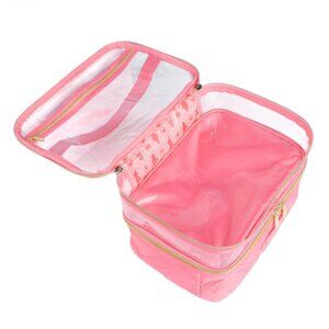 Prepare to dazzle with the Wicked x Lug Whoosh Cosmetic Case, reimagined in Wickedly Green, Positively Pink, Black and Pink/Green representing the power of unity and individuality. With a wipeable top and bottom compartment, it keeps your beauty essentials pristine and organized. Featuring two clearview zipper pockets in each section, you can see your makeup magic at a glance. Complete with luxe gold hardware and a charm bar, this case brings Oz-inspired elegance to your beauty routine.
