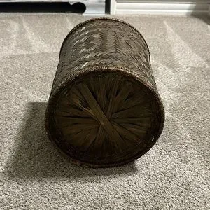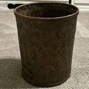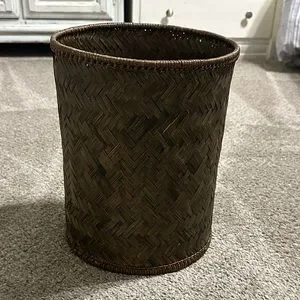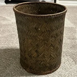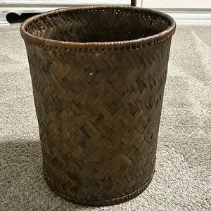 Slightly used wicker basket. Was used as a trash can with a bag inside of it. Can be used for anything though. Please notice on both sides the white in photo 5 & 6. Other than that, it’s in great shape.