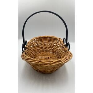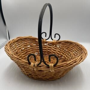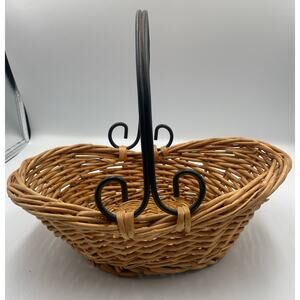 Wicker Basket with black metal swirl handle