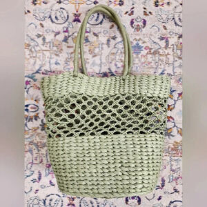Wicker Beach Oversized Bag Sage Green Lightweight Summer Tote