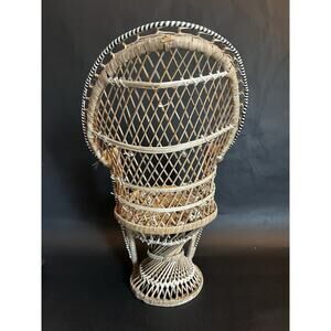 Wicker Peacock Rattan Chair | 15" tall | Plant\Doll Stand | Retro | BOHO | VTG