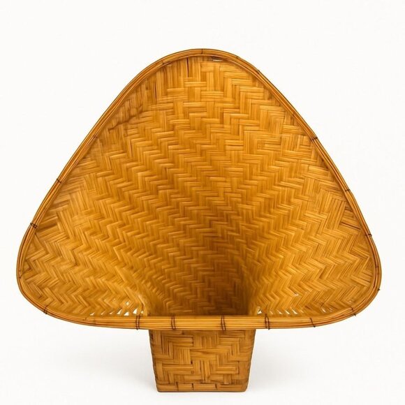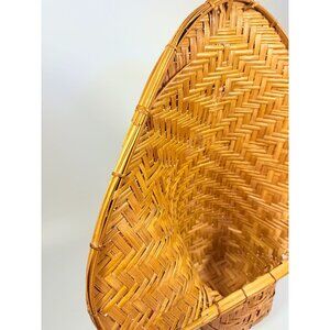 Wicker Rattan Basket Planter Pot Fan Back Spade Hand Woven Retro Boho Mid Centur