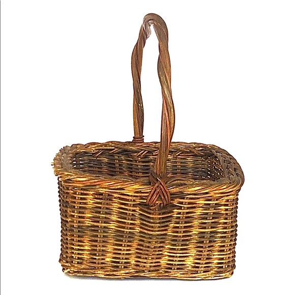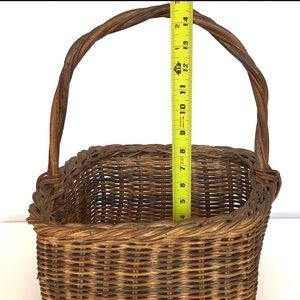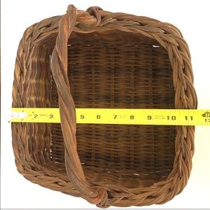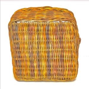 Brown and Tan Wicker Straw Rimmed Square Basket with Handle.