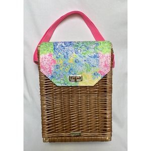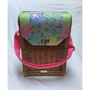 Lilly Pulitzer Wicker Floral Wine Tote or Picnic Tote - Adjustable Strap
