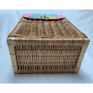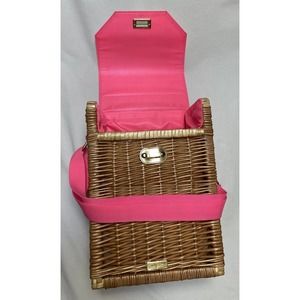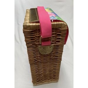 Wicker Wine Tote Lily Pulitzer Picnic Carrier Picnic Tote - Adjustable Strap EUC
