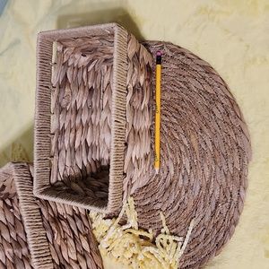 These two baskets are gorgeous. Very stronge and nicely made.They are B N.W.T. sizes are perfect for hand towels in the larger and wash cloths in the small. they are also perfect for a touch of farmhouse 🌿