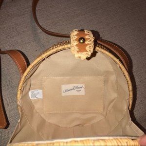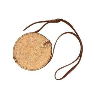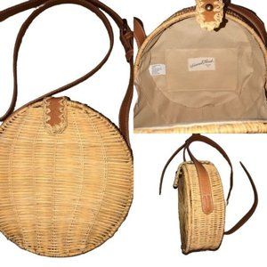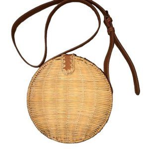 Wicker handbag with leather accents snap closure. Has an adjustable strap. Natural in color. In excellent condition like new. 8” x 3.5” with a adjustable 23” drop from shoulder. 1” wide strap.