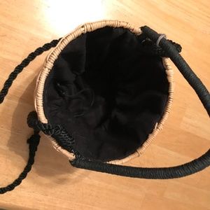 Never used target purse! Great for summer outfits! Has a drawstring in the middle to hide your belongings along with a long strap and handle. Someone put it to good use!