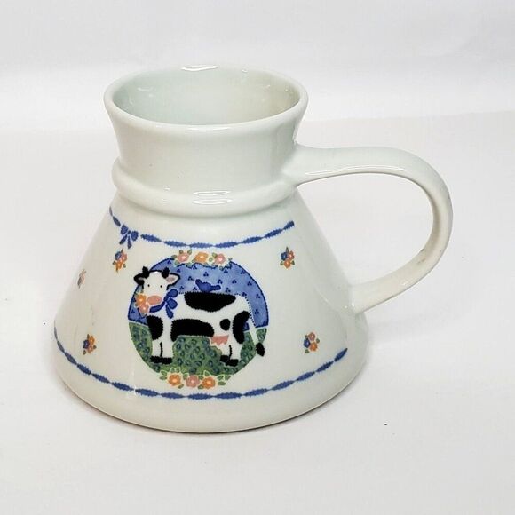 Wide Bottom Coffee Mug Country Cow Flowers Ceramic No Spill