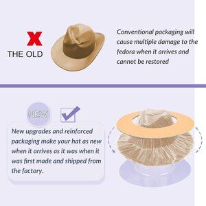 Top notch Packing Each hat packaged carefully with a plastic protector so the integrity of the product would not get damaged during shipping. If you receive a bent fedora hat, please contact us for a replacement.