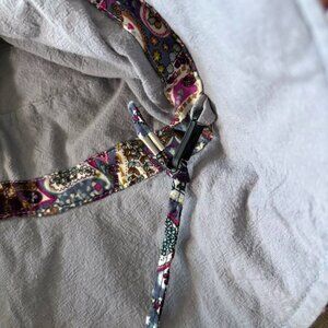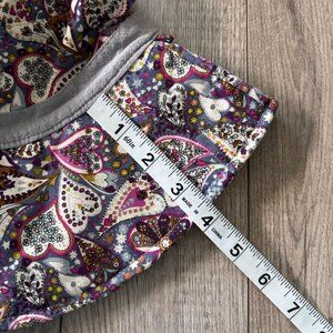 This wide brim sun hat has a delightful heart paisley design — great for gardening or hitting the beach. It's foldable and packable, so you can easily take it wherever you go. Plus, it comes with a removable and adjustable chin strap. Please note: one side of the strap is broken but tied securely and still works great (see photo), it can also simply be removed.