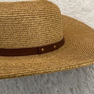 This hat goes with so many different outfit choices and styles. Think white Oxford and cut off shorts, overall jeans and tank top, ankle gladiator leather sandals and so much more!