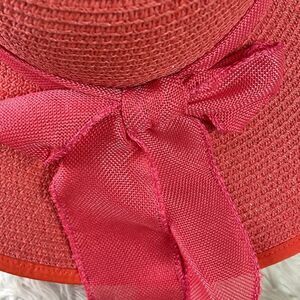 Wide Brimmed Womens Hat, Floppy Bow, Coral Pink