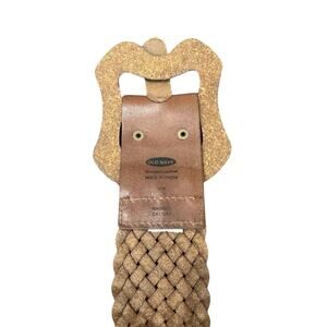 Wide Brown Leather Braided Belt Wide Chunky Buckle Structured - Women's Size S/M