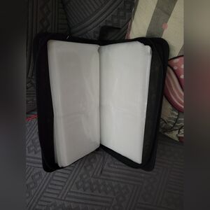 Wide CD case featuring colorful disc designs. Perfect for organizing CDs and DVDs.