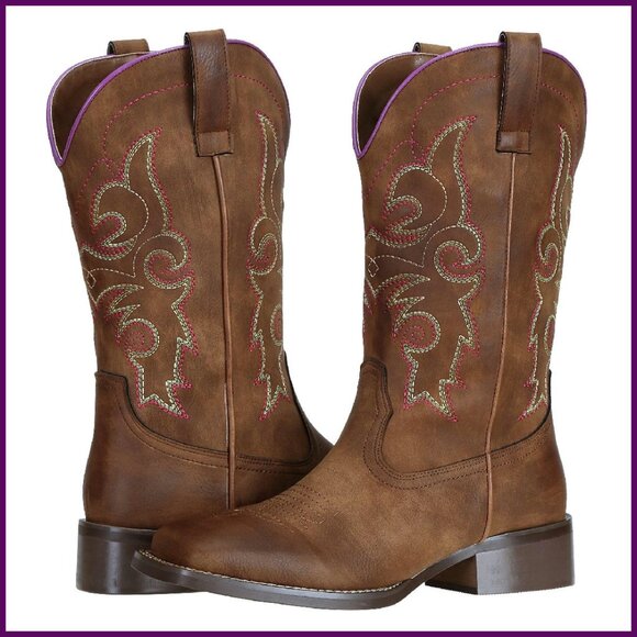 • Style: Crafted with a PU leather upper featuring a five-row decorative stitch pattern and a distinctive square toe design for authentic western flair.