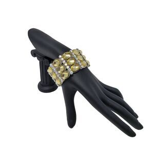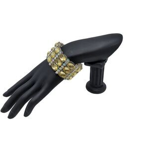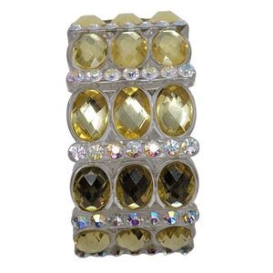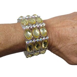 Wide Chunky Stretch Bracelet Faux Yellow Citrine AB Rhinestone Plastic Glam