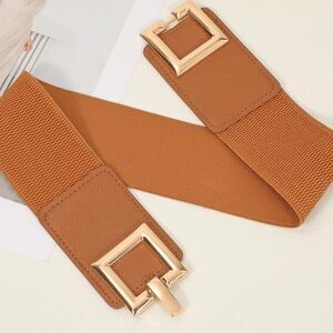 Classic black elastic wide belt. The wide belts for women dresses enhance any outfit with their elegant design and 8-shaped interlocking buckle.