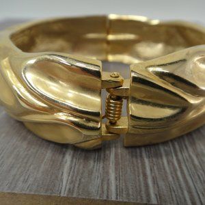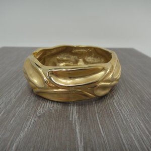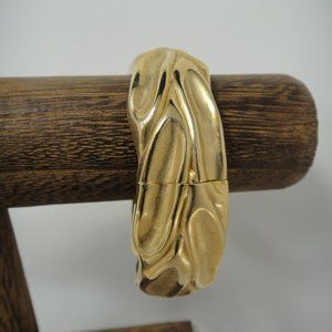 Wide Gold Tone Textured Clamper Bangle Bracelet Designer Quality Heavy