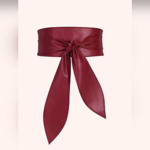 obi belt, wide belt, faux leather belt, burgundy belt, waist belt, wrap belt, adjustable belt, PU leather, fashion accessory, waist cincher