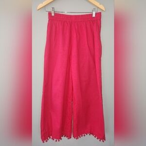 Cotton drawstring pants with pom-pom trim. Beautiful vibrant berry pink color in perfect condition. Fits size small, 0-2.