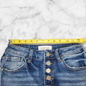 Stylish wide leg flare jeans in a classic blue shade. Perfect for a chic and comfortable look.