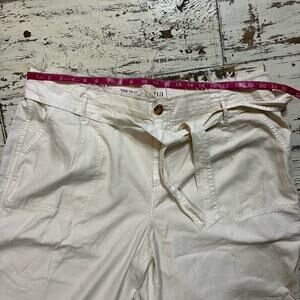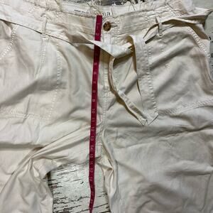 A New Approach cream colored wide leg high rise cropped paper bag style pants. Size 20. Great used condition. Measurements provided in pictures.