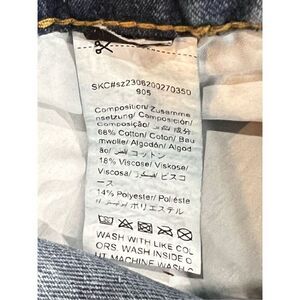 Cotton blend with very little stretch. Laying flat measure 15" in the waist, 19" and the hips, 12" rise, and 31.5" inseam.