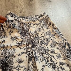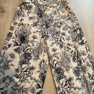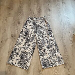 Wide Leg Japanese Culottes Pants White with Blue Flowers With Pockets Sz. M