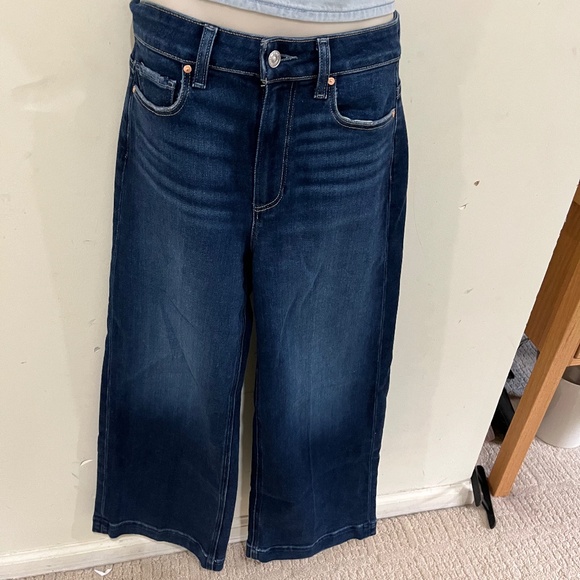 Anessa is our modern ultra high-waisted wide leg with an easy, relaxed fit and an ankle-length silhouette for an effortlessly chic look. This pair is cut from PAIGE VINTAGE denim in a rich dark wash with natural fading and classic lived-in details.