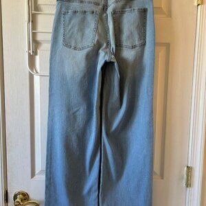 Much lighter in person that photo....high waist, wide leg, light wash sz. 8 Old Navy jeans.