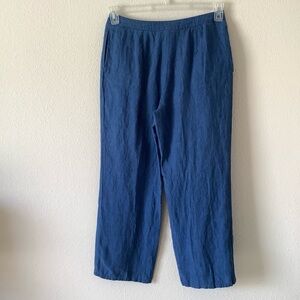 Wide Leg Linen Ankle Pants Pockets Nautical Coastal Lagenlook Casual Blue 12