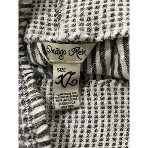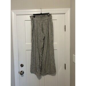 Wide Leg Linen Blend Black White Pinstriped Pull On Pants Size XL Smocked Waist