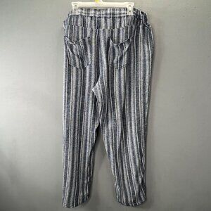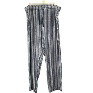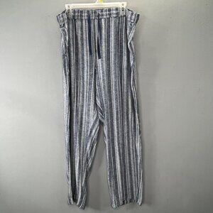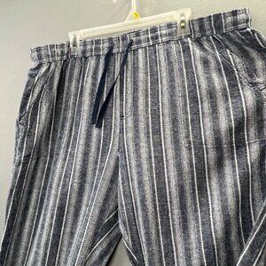 Wide Leg Linen Blend Pants 1X Women Striped Pull On Drawstring Elastic Lagenlook