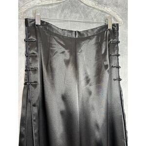 In excellent condition with no stains or flaws. Invisible zipper closure on front. Pleats that make the legs wider. Asian inspired details on the sides.