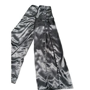 Wide Leg Pants Women SZ XL Runs SM Asian Theme Shiny Unique Pleats Traditional
