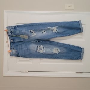 Really cute wide leg high-rise jeans. very little stretch. Made to wear baggy like. These were my neices but they couldn't fit her. They are a true juniors 13, no stretch!