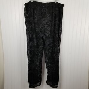 Wide Leg Sheer Mesh Pull On Pants Draw String Women's Plus Beach Cover 3X Black